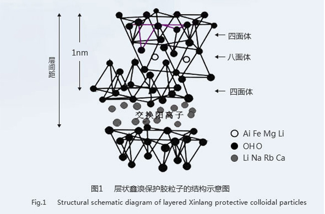 鑫浪多彩保護膠的化學結(jié)構(gòu)通式為Mx[LixMg6-xSi8O20 (OH)yF4-y](M=Na、Li),是一種無機硅酸鹽 層狀納米礦物材,屬于單斜晶系 。由硅-氧四面體和鎂-氧八面體在豎直方向上以 2∶1 的周期性排 列堆積而成,其分子結(jié)構(gòu)如圖 1所示。硅-氧四面體由一個Si 原子與四個 O 原子連接構(gòu)成,Si原子 在四面體的中心,四個 O 原子在四面體的四個頂角處;鎂-氧八面體中,鎂原子位于八面體的中心, 八面體頂點的氧原子還與相鄰的鎂原子組成另外的八面體。